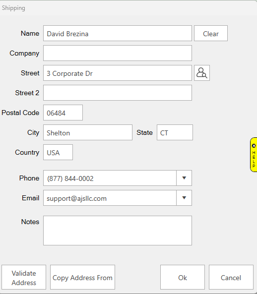 b. To copy an address from a customer record, use Copy From….