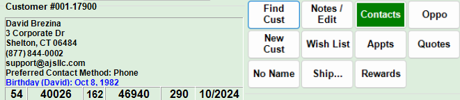 - Primary contact methods (address/phone/email) will be displayed under the customer's name.