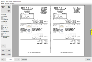 The receipt preview allows you to view the receipt on the screen. You can use the checkboxes on the left to choose what details to include.