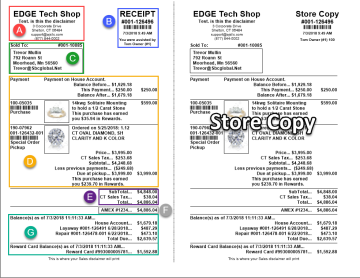 Your store name and address as defined by your Edge license; can also display logo if specified in System Options