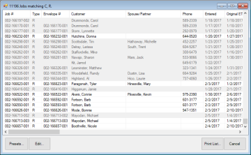 - From here you can Edit an existing job or use Print List to get a print out of matching jobs.
