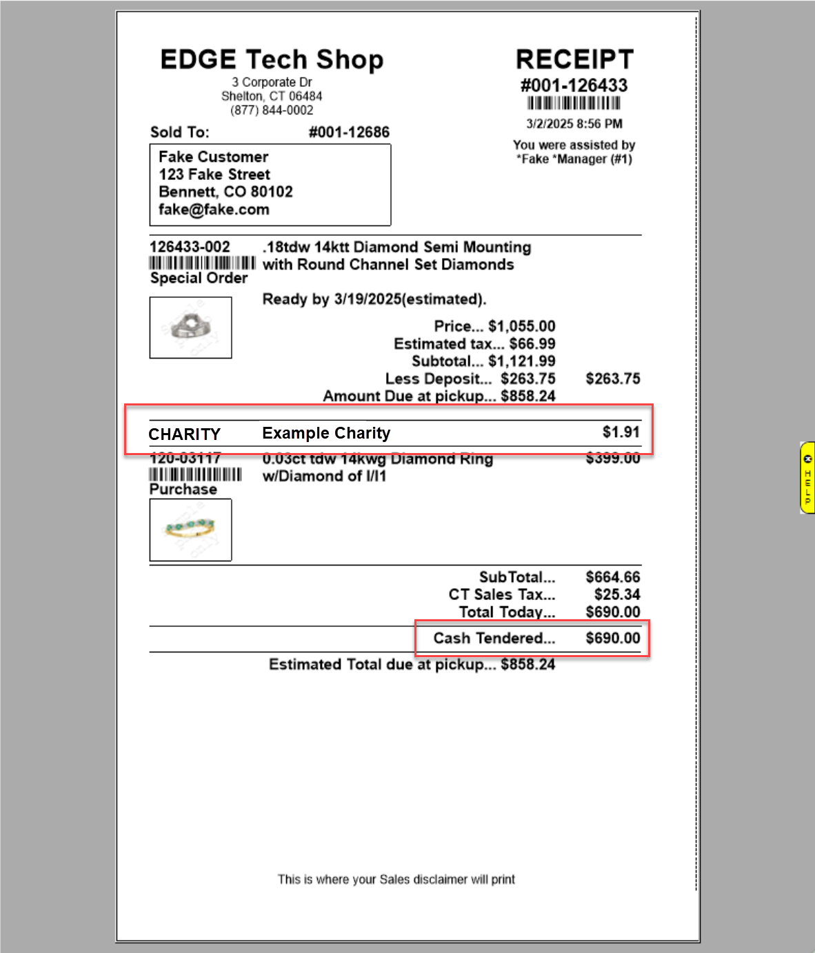 Once you have made your selection, the Misc Sale Line with your charity will be added to your transaction with the Round Up amount. In the example below, we chose the ‘Nearest $10’ option: