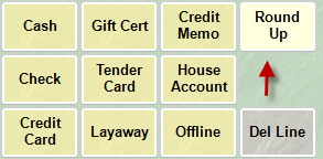Prior to accepting a payment method to complete the sale, you will click the Round Up button located within the Tender Options area. What happens when you click this button is determined by your System Options.