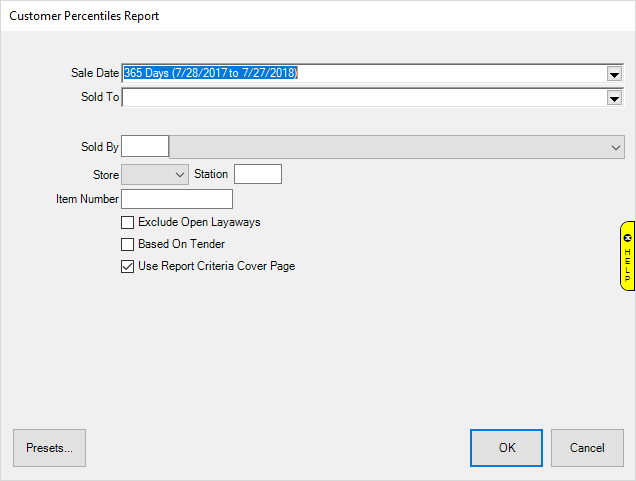 - If you do not want to include open layaways (i.e. not picked up) as sales, check the Exclude Open Layaways option.