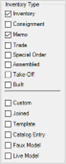 - Choose the Inventory Types you would like to include, e.g., Inventory, Consignment, Memo. Only the item’s current inventory type is used. Items that had types changed over time will only ever be reflected under their current type regardless of date used.