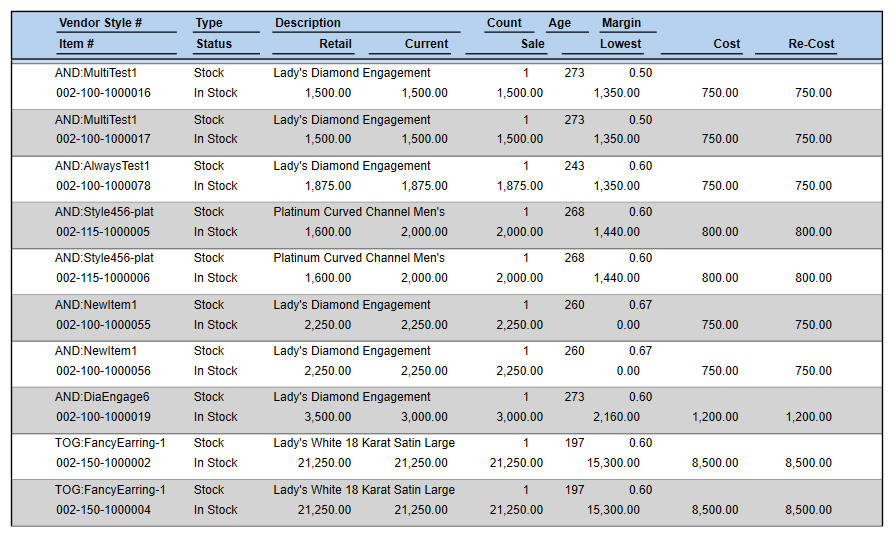 The Pricing Report is run the same way as any other inventory report, but is formatted specifically to show pricing details.