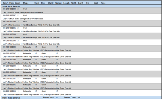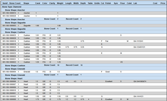 This report automatically groups by the stone type.