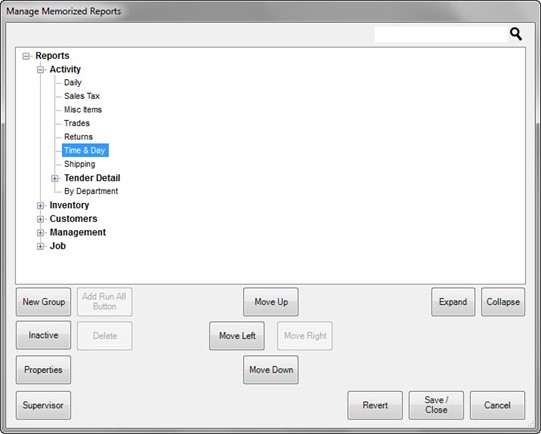 - Using the Move Up/Move Down/Move Right/Move Left buttons, move the group to the desired location in the hierarchy, then move the newly memorized reports under the group.