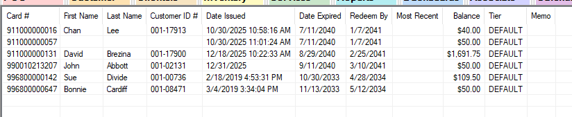 Note: If you want to set up multiple cards and then activate them at POS with these settings. If you do fill out the issued to customer field and the referred by customer field the card will default to a rewards card and will not pay out on the referred by because it will not be a new customer at this point.