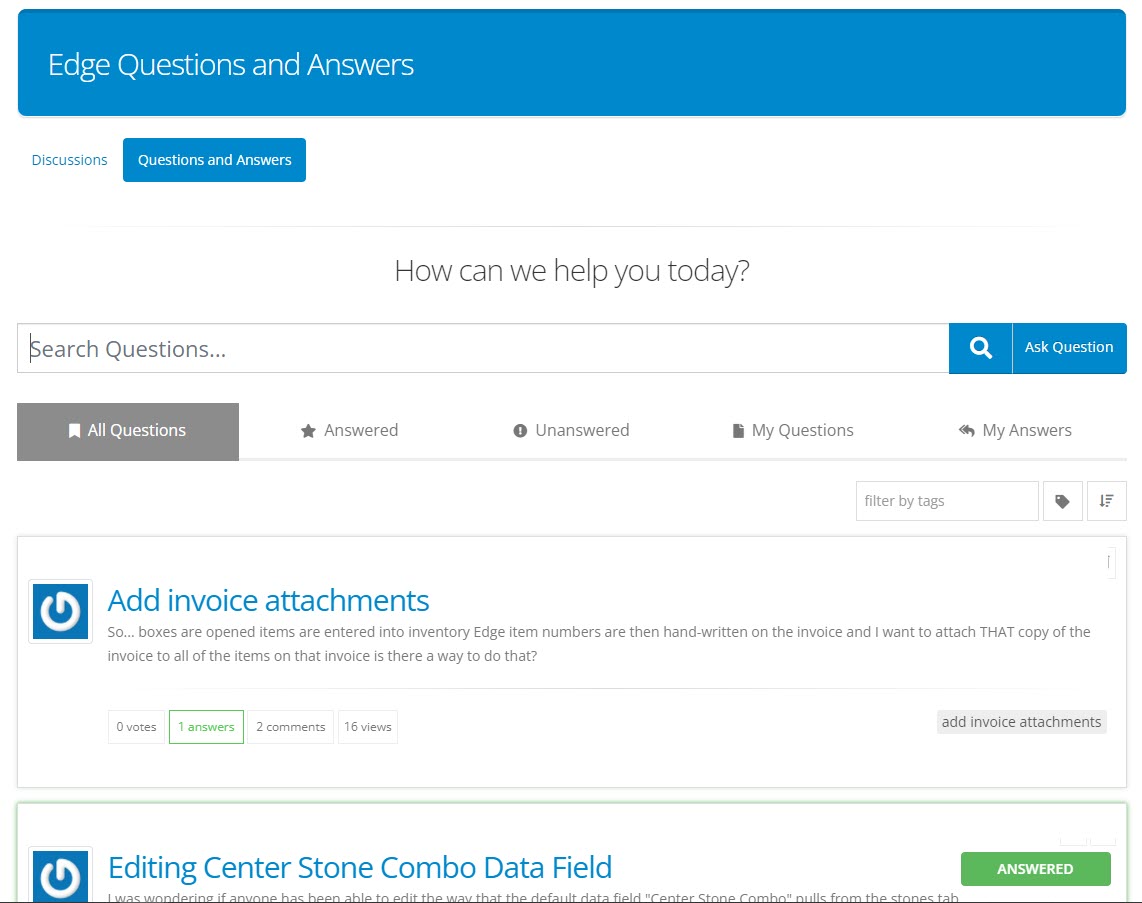 Ask all of your Edge related questions in the EdgeUser Q&A section and connect with Edge Technical Support like never before.