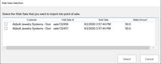 Sales made on Shopify will be automatically imported and the Web Sale button will be illuminated at the top of the POS window. Remember, you must be logged in as the web store (default 98) to see this.