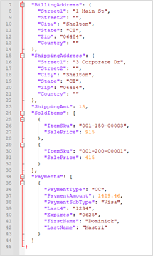 The WebSale.JSON then contains objects for BillingAddress, ShippingAddress, SoldItems, and Payments.