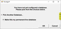 - Select Pick Another Database and check the Make this my permanent live database box, then click OK.
