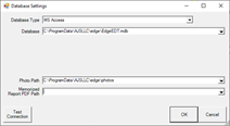 - Click the drop-down next to Database and select EdgeEDT.mdb found in the folder C:\ProgramData\AJSLLC\Edge, then click Open.