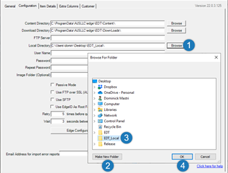 - Click the Browse button next to Local Directory. Use the Make New Folder button to create a new folder called EDT Local on your Desktop, then select this folder and click OK.