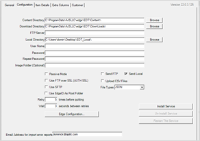For testing purposes, we are going to set it up to work with local folders. If you want to test with your FTP site instead, enter your credentials (FTP Server, Username, Password) and ensure Send FTP is checked rather than Send Local. All other instructions and functionality are the same between local and FTP use.