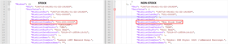 The first wish is linked to an Edge item (stock) while the second wish is not (non-stock).