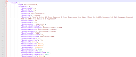 This file contains item number 001-100-00001 which is a diamond engagement ring.