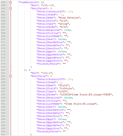 Finally, a mapping of item details is provided at the end. Item details are setup per category and shared by all items within the category. These are customizable fields the store can use to store data.