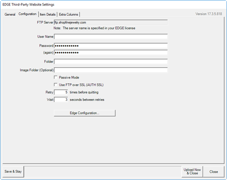 Opens The Edge configuration window. Database configuration is housed there; use this to confirm the database to upload.