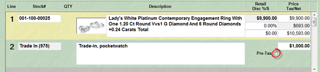 If you are taking a buy/trade that is being applied to one or more non-like item purchases, you should uncheck the Pre-Tax option on each trade-in saleline.